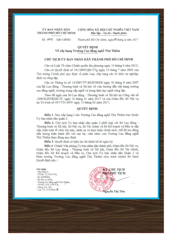 TRƯỜNG CAO ĐẲNG THỦ THIÊM - THÀNH PHỐ HỒ CHÍ MINH