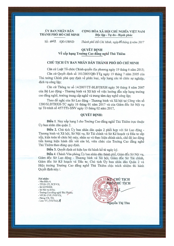 TRƯỜNG CAO ĐẲNG THỦ THIÊM - THÀNH PHỐ HỒ CHÍ MINH